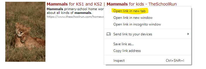 You’ll get search results that are similar to these (search link). Let’s look at them together. I like to go through and open a few in new tabs so I can quickly see which one I like the best. To open a search in a new tab “right click” on the name of the page (you may need to tap with two fingers) and then click on “Open link in new tab”.